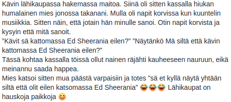 | 32 | 2019-07-24T20:09:34 | #karppaus | Koffa | message | kunhan vittuilen :) | {} |